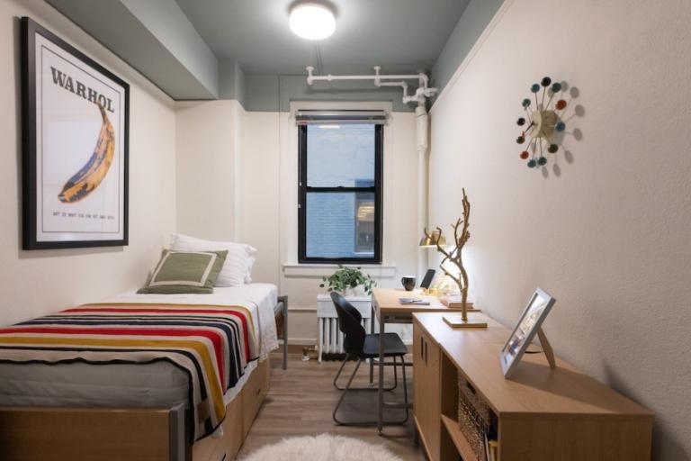 La residencia Midtown East está dedicada al alojamiento de estudiantes y ofrece habitaciones individuales con baño privado y dobles con baño compartido, en una ubicación céntrica de Manhattan. Las habitaciones están completamente amuebladas y equipadas con cama individual o doble, escritorio y silla, armario, microondas y mini nevera, proporcionando un entorno cómodo y funcional para la estancia académica.